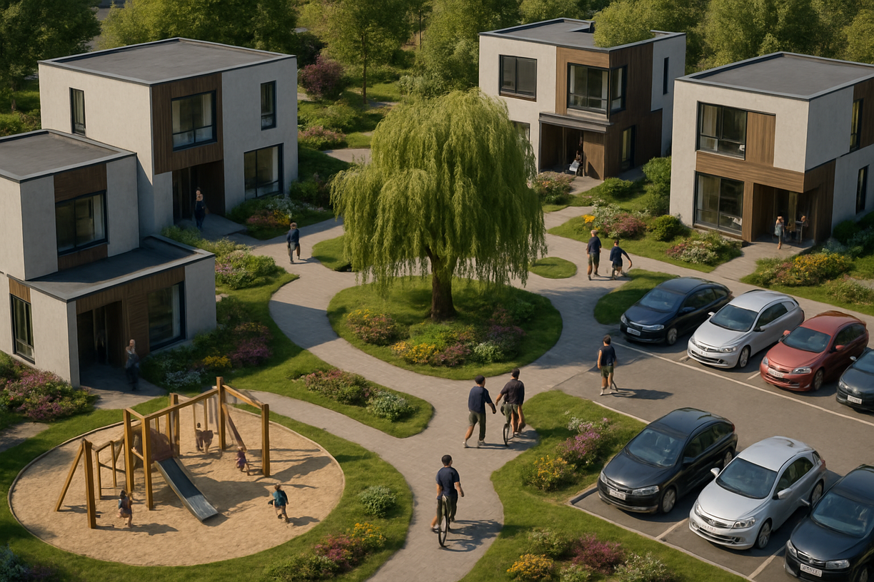 …ein Ort, an dem mehrere Generationen, Familien oder Freunde in direkter Nähe leben können – jeder in seinem eigenen Zuhause und doch gemeinsam. Flexible Wohnmodule machen aus einem Grundstück eine lebendige Gemeinschaft.