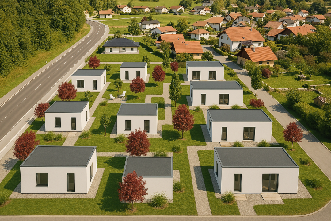 Im Münchner Umland entstand ein kompakter Modulhauspark mit 18 Einheiten für junge Familien, Singles und Paare. Das Projekt kombiniert energieeffiziente Bauweise mit flexiblem Wohnraum und wurde innerhalb weniger Monate realisiert – inklusive Grünflächen, Wegenetz und Sharing-Angeboten.